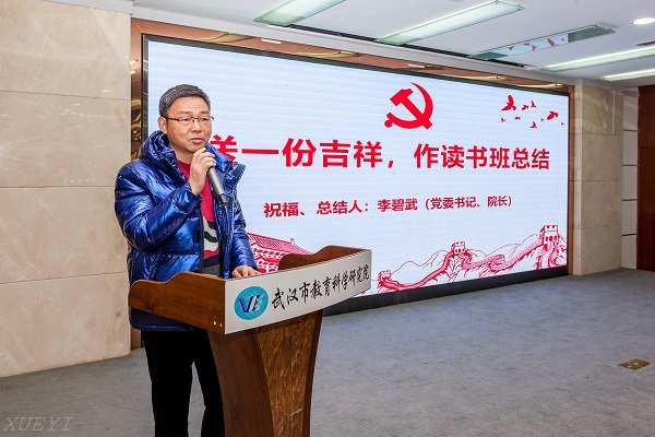最后,院党委书记、院长李碧武同志给大家做了 “不忘初心、牢记使命”主题教育读书班总结:肯定本期读书班开班以来学习内容丰富、学习形式多样、交流研讨深入、学习氛围浓厚,学习效果良好。明确了建设“道德讲堂”的首要目的是促进转化,来推动“知行合一”的道德实践。通过讲述我们自己的故事,来引导我们在实践中完善自我、提升素质。勉励全体党员干部,还需进一步统筹处理好学习教育和业务工作的关系,推进主题教育继续有力有效深入实施。
