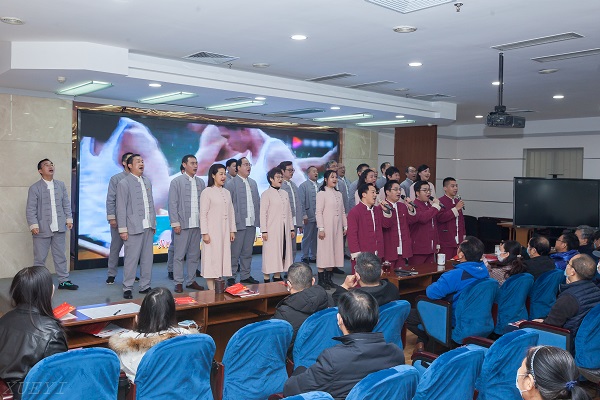 首先,第四支部全体党员与中学教研室全体老师带来了合唱——《众人划桨开大船》。一滴水只有放进大海里才能永不干,一个人只有当他把自己和群众融合在一起的时候才能有力量。力量从团结来,智慧从劳动来,行动从思想来,荣誉从群众来。人心齐,泰山移,过去的岁月里,正是因为有了齐心合力的法宝,中国共产党才能走过艰难,走过风云,走向辉煌。一首铿锵有力的歌曲唱出了大家团结一致、众志成城建设祖国的坚定信念。