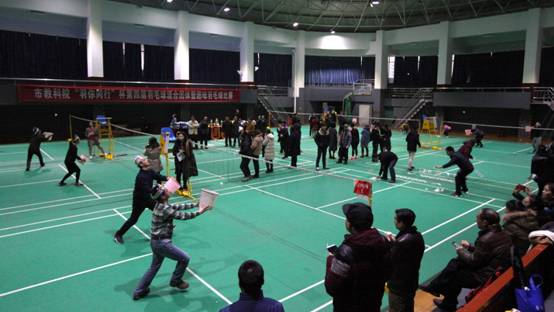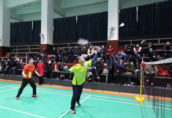决赛当天,尽管室外天寒地冻细雨飞,但终究抵挡不住体育馆内歌声加油声笑声的大聚会。赛前的热身韵律操点燃了全场的激情。开赛口哨响起,参赛选手们斗志昂扬,热情不减,敏捷的身手,娴熟的技巧,时而网前截击,时而以巧破千斤,时而大力扣杀,精湛的球技让整场比赛高潮迭起。