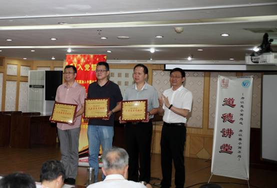 6月29日上午,在党的生日到来之际,我院党委根据市委教育工委、院党委《2017年党务(统战)工作要点》《党风廉政建设工作要点》,院《“两学一做”学习教育计划指导书》以及文明创建的有关文件要求,隆重举行了纪念建党96周年表彰、实施“红色引擎工程”专题党课暨道德讲堂活动。全体院领导出席了活动。院全体党员及教职工,离退休支部党员代表参加了活动。我院所在的红燕社区的3位党员代表——青教妇联主任陈宏绘、党支部副书记罗葭伊、社区专干陈静也受邀参加了活动。活动由院办公室杨明春主任主持。