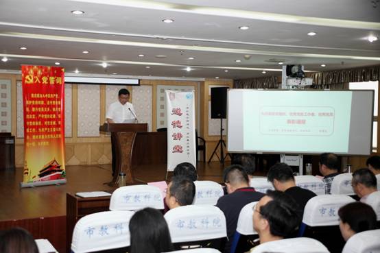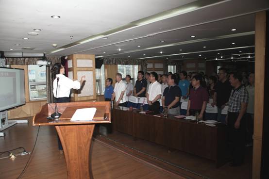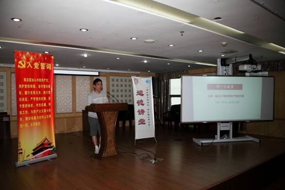 道德讲堂活动按照五个要求的环节有序开展。“看一部短片”环节中,大家集体收看了中共中央组织部电教片《做合格党员》第一讲《全心全意为人民服务》;“诵一段经典”环节中,全体党员一起重温入党誓词。“讲一个故事”环节中,我院今年评选出的优秀共产党员代表田虹、张灿分享了他们的故事,展示了我们身边的普通党员立足平凡岗位建功立业的先进经验。还在西藏援教的张灿老师为本次活动录制的事迹视频,让全体活动参与者深受感动。院党委委员、副院长朱长华代表党委主讲了题为《实施“红色引擎工程”,不断繁荣“红色文化”》的专题党课,也作为道德讲堂的一段寄语。朱院长从红色引擎的内涵要求,到繁荣红色文化的意义和价值以及教科院在行动等四个方面进行了讲解,还结合身边党员的故事就如何实施红色引擎,如何践行武汉精神,教科院如何对全市教育做好引领,进行了解读和点评。朱院长号召广大党员干部要自觉增强政治意识、大局意识、核心意识和看齐意识,立足岗位,砥砺奋进,凝心聚力,拼搏赶超,激活红色细胞,敢当红色领头雁,彰显先锋本色,为全面建设全国一流教科院、为开启复兴武汉的新征程贡献自己的力量。在“唱一首歌”环节,与会者全体起立,一起高唱《国际歌》。活动在庄严的国际歌声中结束。