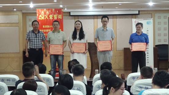 上午九点,在雄壮的国歌声中,活动拉开了帷幕。在纪念建党96周年活动中,院党委副书记、纪委书记李碧武宣读了《2017年赢乐lV先进基层党组织、优秀党务工作者、优秀党员表彰通报》和《“家规家训、官德箴言”征集评选情况通报》。院工会主席杨晓文通报了党员认领社区困难群众“微心愿”活动情况,并就党员认领社区困难群众“微心愿”活动的常态化、制度化发出倡议。院领导为我院今年评选出的17名优秀党员、6位优秀党务工作者和3个先进基层党组织颁发了荣誉证书。