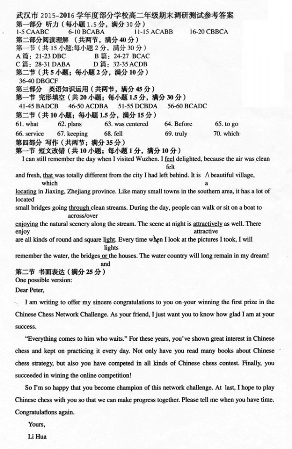 上一条:2015-2016学年度期末武汉市部分学校高中一年级调研测试英语试题参考答案及评分细则