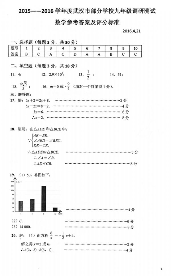 下一条:2015-2016学年度武汉市部分学校九年级调研测试思想品德试题参考答案及评分细则