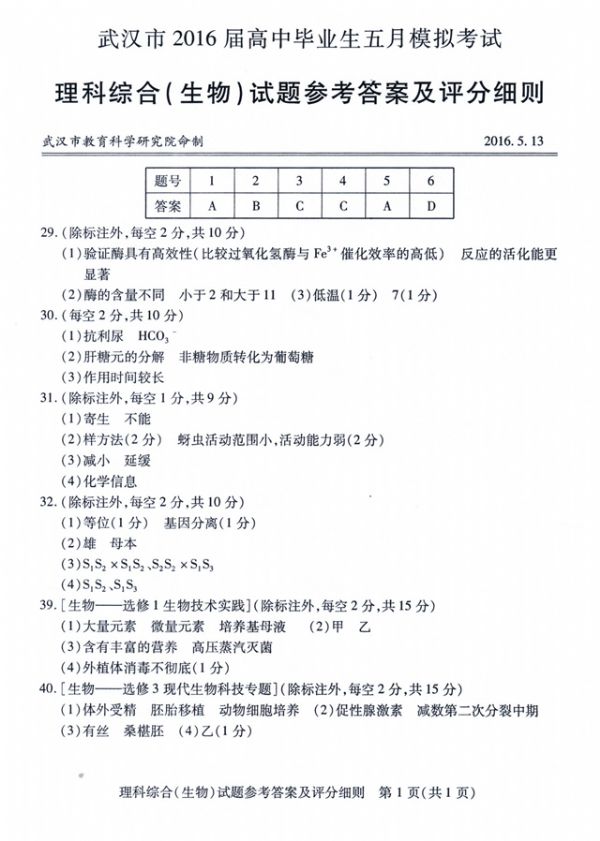 上一条:武汉市2016届高中毕业生五月模拟考试理科综合化学参考答案及评分细则