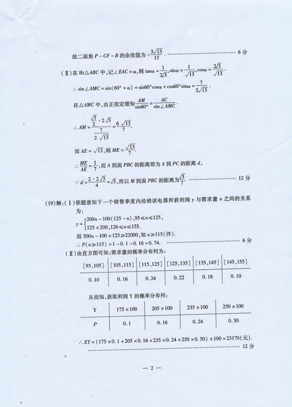 武汉市2016届高中毕业生二月调研测试理科数学参考答案及评分细则