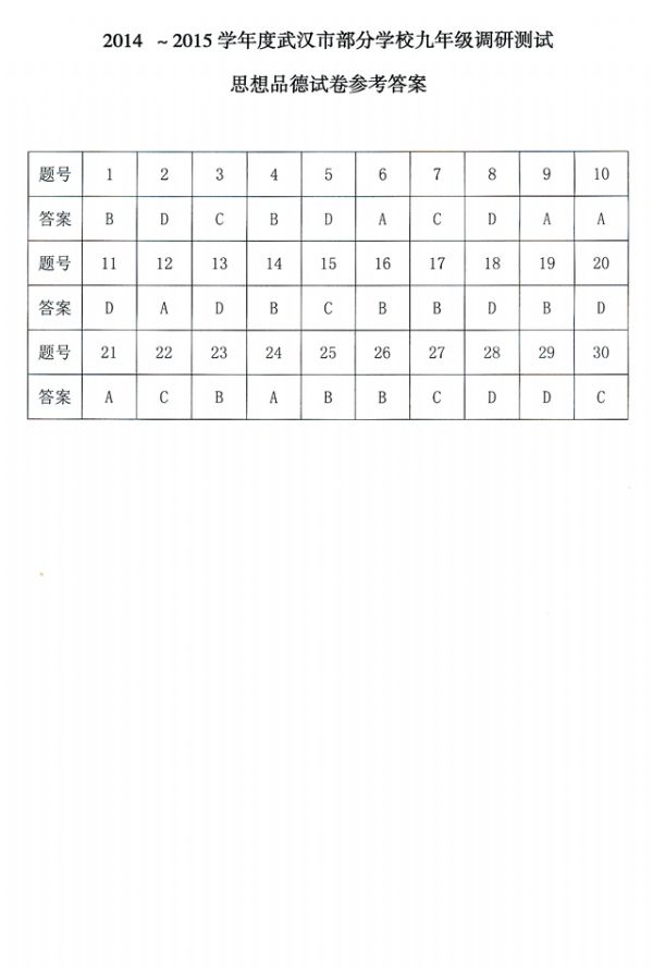 上一条:2014-2015学年度第一学期期末武汉市部分学校高中二年级调研测试化学试题参考答案及评分细则