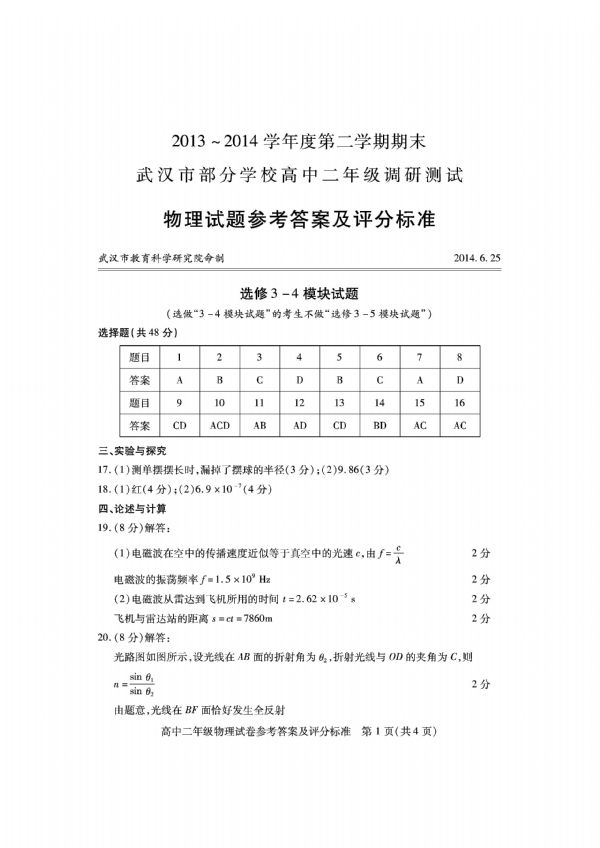 下一条:2013-2014学年度第二学期期末武汉市部分学校高中二年级调研测试语文试题参考答案及评分细则