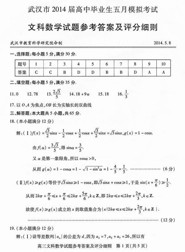上一条:武汉市2014届高中毕业生五月模拟考试理科数学试题参考答案及评分细则