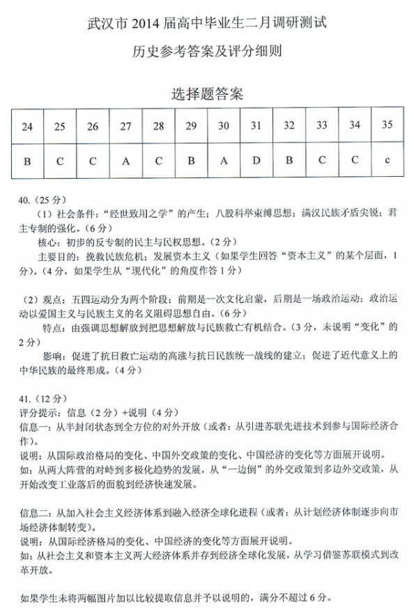 下一条:武汉市2014届高中毕业生二月调研测试文科综合(政治)试题参考答案及评分细则