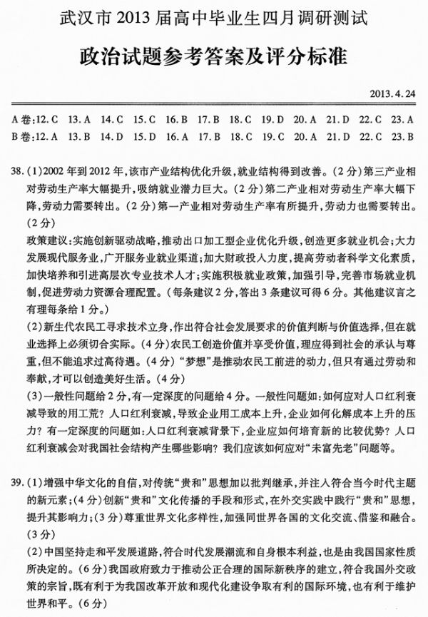 下一条:武汉市2013届高中毕业生四月调研测试文科综合地理试题参考答案及评分细则