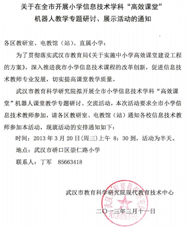 上一条:关于举办“2012年武汉市第十届初中信息技术与课程整合教学优质课评比”获一等奖课列展示会的通知