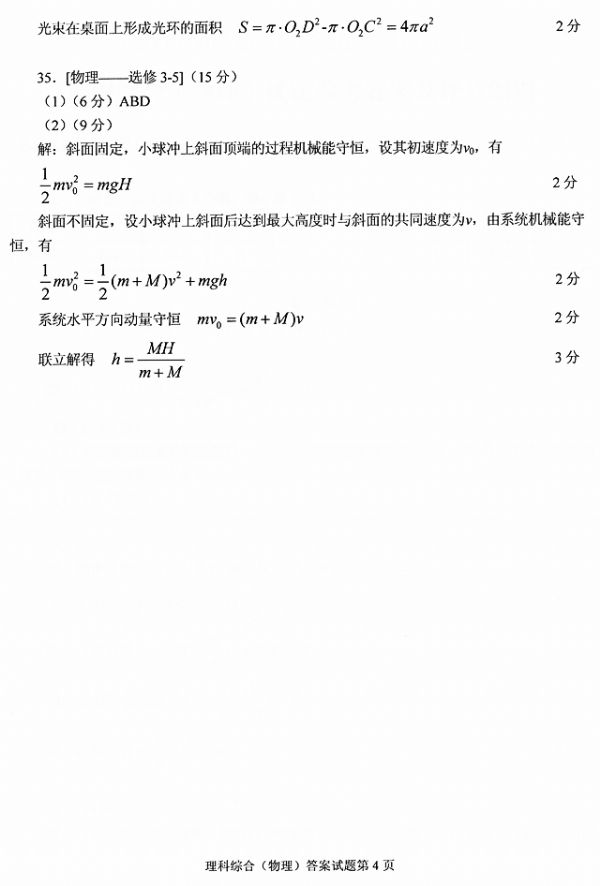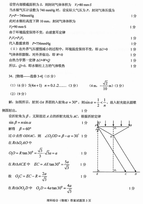 2013年2月高三物理调考答案
