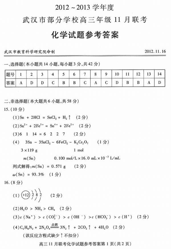 下一条:2012--2013学年度武汉市部分学校高三年级11月联考地理参考答案