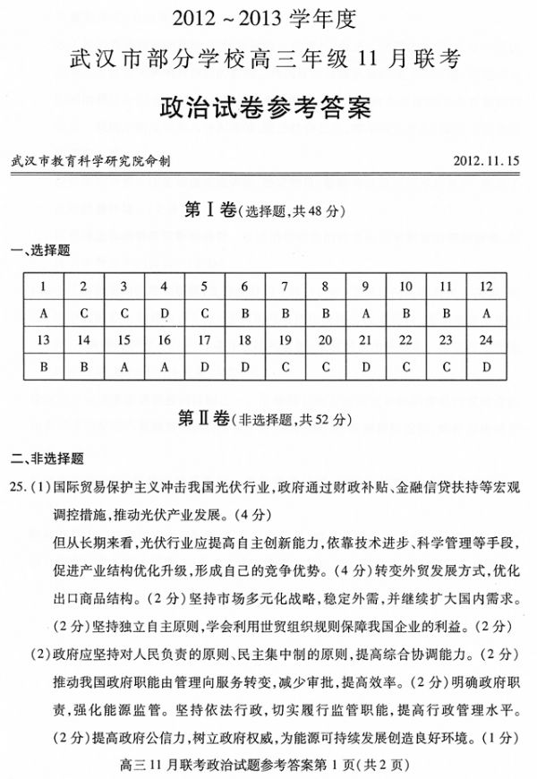 上一条:2012-2013学年度武汉市部分学校高三年级11月联考语文参考答案