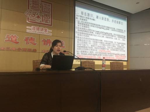 第一部分由武汉市第六中学优秀青年教师方兰老师做2017年高三四月调研考试质量分析报告。方兰老师的报告准备非常充分,结合四月调研考试的数据分析和学生的答题情况,就学生在知识储备、审题技巧、答题规范、学科能力等方面暴露出来的问题做了很详细的解剖,并给出了应对策略,同时还从考纲的变化、经典高考试题赏析、审题技巧、规范答题等视角对四月调研考试做了深入解读,对老师们后期的备考给予了很大的帮助。
