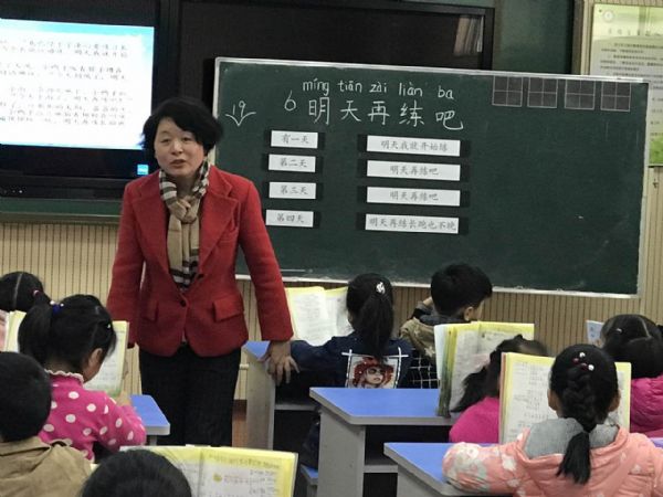 首先,武汉市光谷第一小学陈贝老师执教鄂教版一年级下册《明天再练吧》第一课时。孩子们一进教室,就被活泼、年轻的陈贝老师吸引,一句“请你像我这样做”便引来孩子响亮地喊着“我就像你这样做”;一声有节奏的击掌,便得到孩子们积极地模仿回应……简单的交流过后,单纯天真的孩子们迅速进入到陈贝老师的课堂:在识字环节中,归类识记的方法大大增进了孩子们识记生字的效率,在巩固生字的环节中,无论是小鸭子过河的游戏,还是和小鸭子排队滑滑梯的游戏,陈贝老师都以学生为主体,加大了孩子们识记生字的主动性与趣味性;在词语教学中,陈贝老师从轻声词逐一指导朗读,到四字词语一次叫出它们的名字,再到ABB式词语拓展积累,层次清晰、指导方法得当,在齐读词语的环节中,进一步体现了课堂教学的实效性;在指导朗读中,孩子们被小鸭子下决心练习长跑的故事所吸引,最后孩子们通过情境创设而走进小鸭子的内心,在陈贝老师入情入境的指导下,从孩子们的朗读中,我们仿佛看到了这只自信地小鸭子的模样,整个课堂意犹未尽……`