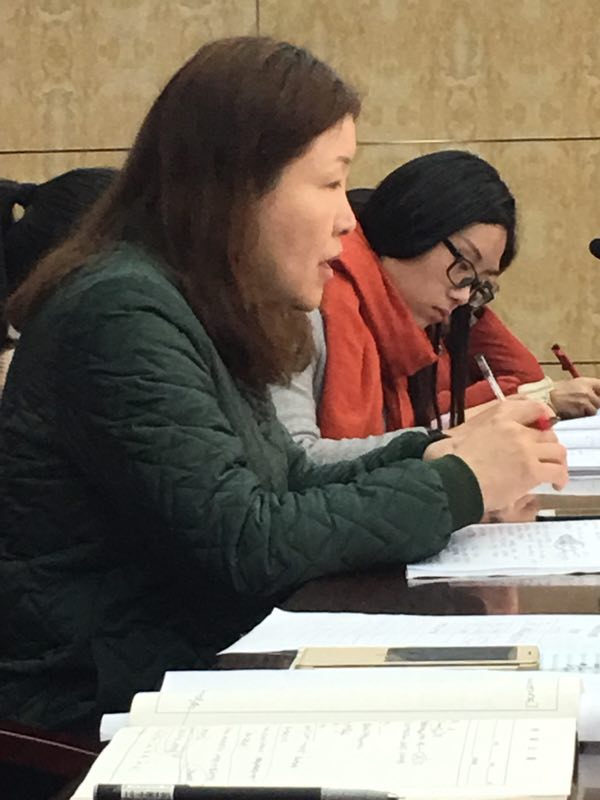 两节课后,所有听课教师集中在会议室进行评课,评课环节由张凤英老师主持。