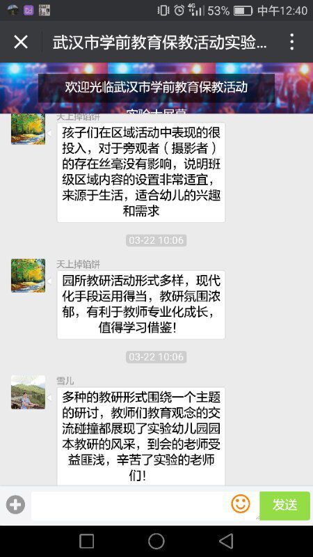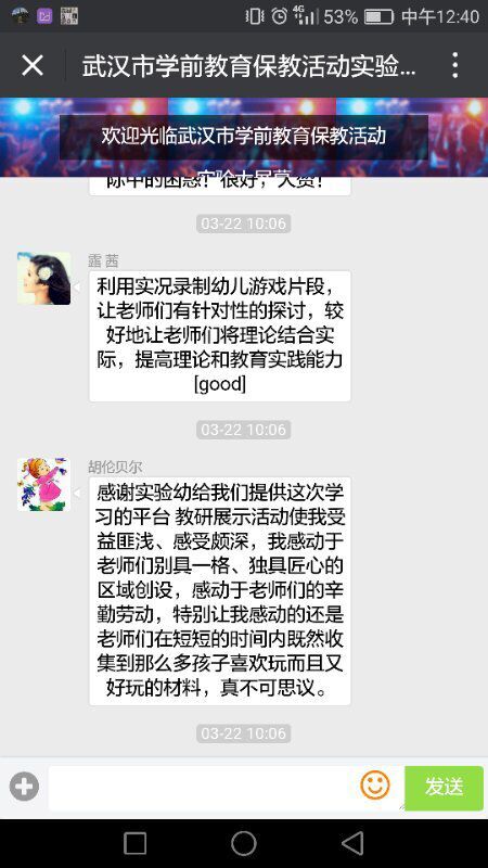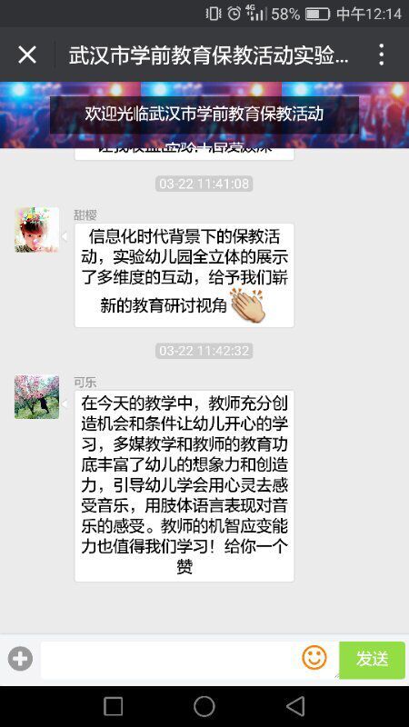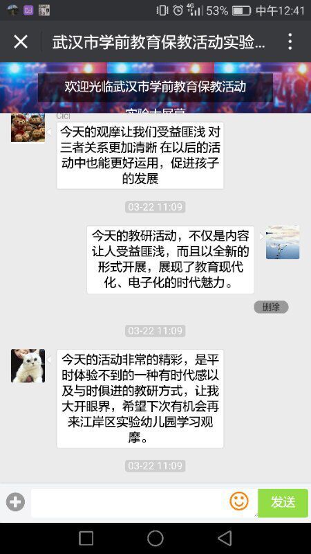江岸区教育局分管学前教育副局长黄运萍代表江岸区教育局欢迎各区姐妹园老师的到来,感谢赢乐lV给江岸区实验幼儿园提供了交流的平台。她在会上指出,教学是相长的,学习是共通的,教研活动的关键是要点化心灵、触类旁通。同时勉励广大教师把握学习机会,不忘初心,学无止境,并希望这样的活动多组织、多在线。研讨活动中,观摩教师通过网络平台进行了在线交流。先后发布“共研、分享,我们一起在成长”、“活动丰富饱满,无论是经验分享、教研活动还是教学展示,都体现了江岸区学前教育质量优、特色新、品位高、现代化的大目标”等评论,受到与会者一致好评。在今后教研活动中,更加努力提高教研活动针对性和实效性。鼓足干劲,一起加油!