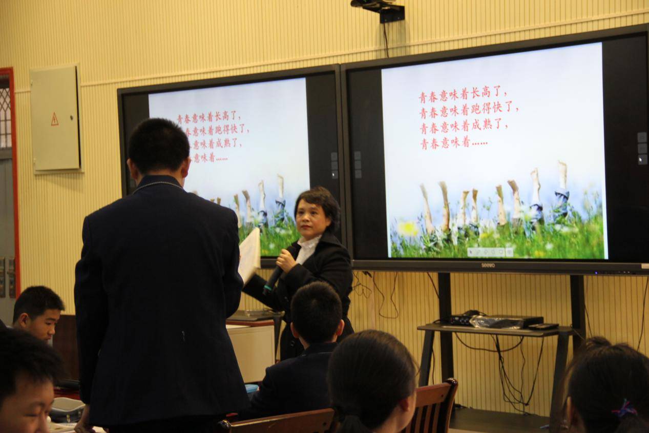 上午8:40,甘梅老师的展示课《青春的邀约》一开始,便吸引了老师们。课堂上师生互动,生生互动,寓教于乐,学生的主体地位得以充分体现,很好地落实和体现了新课改的理念与要求,教学效果显著。同时,师生优秀的综合素质与良好的精神风貌,给观摩教师留下了深刻印象,引来阵阵赞叹。课后,甘老师还进行了微课展示,赢得在场老师的一致好评。