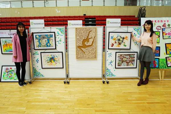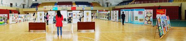 本次比赛与以往不同的是,一场名为“我与阳光运动”的美术作品展也在该校的“搏健馆”里如火如荼的进行着。来自全区20所学校参与了此次展览,上演了一出“体美”大结合的表演,为这金秋十月的运动场增添了浓墨重彩的一笔。开幕式结束后,杨局长携教育局、教发院的领导及各校校长、书记们来到了搏健馆,领导们对此次美术作品展给予了充分肯定。