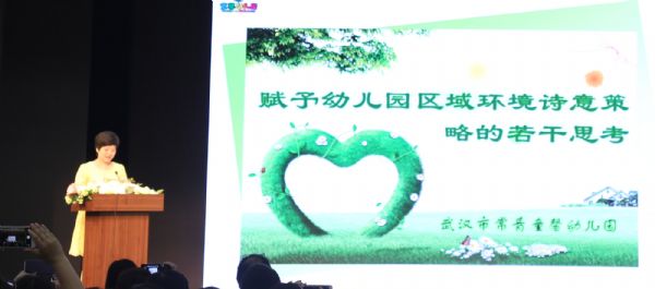 常青童馨幼儿园高思琪园长紧接着为大家分享了《赋予幼儿园区域环境诗意策略的若干思考》。该园认为“富有诗意文化的环境是让人感动和接纳的”,于是在追求和探索诗意环境的路上从未停下脚步。该园致力于在园本公共区域呈现恬静雅致的教育诗意、园本公共区域呈现恬静雅致的教育诗意、专用活动区域彰显灵动趣味的合作诗意、班级活动区域体现自我满足的游戏诗意,用“爱”理解的幼儿游戏观、用“心”布置的幼儿区域游戏环境、用“理”收集的区域游戏材料、用“情”介入的区域游戏指导,为幼儿园区域环境提供了更多的新意和灵气。
