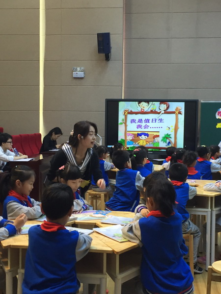 吉林街小学刘于勤老师执教的一年级品生课《今天我值日》虽然只有短短的四十分钟,但课堂上弥漫着浓浓的责任感和光荣感,几次都掀起了积极热烈地讨论为班集体出谋划策的小高潮,通过合作、体验、探究,孩子们都意识到自己是班级里的小主人,要为班级服务,做一名主动、大方、细心、认真的快乐值日生。