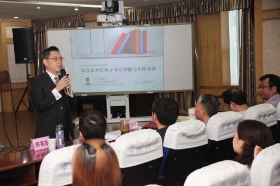 讲座中,沈老师从“音乐对孩子成长的重要与人格养成”、“孩子的艺术美学与视觉涵养”、“领袖七大特质”(人格性、抗压性、理解性、肢体性、社会性、感受性、艺术美力学)、“艺术美学力”(持续力、创造力、想象力、艺术鉴赏力)等多角度分享了音乐的学习对于学生一生发展的重要性。