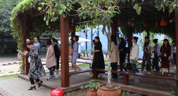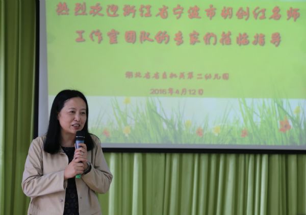 首先,中国教师报记者刘婷向大家介绍活动背景和意义。接着,由李凤莲园长致欢迎词,并介绍园所文化。围绕“开放自然 乐享成长”办园理念,立足生态自然、环保艺术、开放顺应、张扬个性的环境文化创设愿景,凸显了绿色自然的田园风格,交流中提出幼儿园环境创设应以幼儿为本、为幼儿发展服务的理念与前来参观的宁波名师工作室的专家园长们产生了高度共鸣。