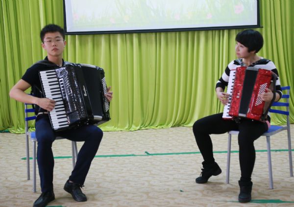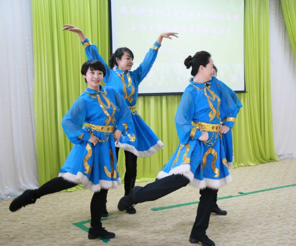 接下来,省二幼阳光艺术团的青年教师表演了精彩节目。分别是董君老师演唱的歌曲《一杯美酒》,女高音的歌声如痴如醉,赢得了老师们的阵阵掌声。舞蹈《我和草原有个约定》透过老师们舒展豪迈的舞姿让大家感受到了草原的辽阔 ,骏马的奔驰。毕业于英国伦敦大学,音乐教育学硕士王田甜老师,她为大家带来钢琴独奏《莫斯科夫斯基》,行云流水般的演奏让我们徜徉在美妙的音乐之中流连忘返。陈欢颜老师带来一段古典舞《浮花恋影》,这段独舞,对身体的柔韧度、协调性、以及动作的连续程度都有较高的要求,妙曼的舞姿惊艳到我们的双眼。李娜老师带来歌曲《军中飞来一只百灵》,在这首歌曲里为大家绽放出花腔女高音的魅力。演出的压轴好戏,由梁丽娟,李泽峰老师带来的手风琴合奏《天使爱美丽》,在声情并茂默契的合奏中感受到了素有“快乐王子”之称的手风琴的魅力。胡剑红老师赞赏教师们素养高,艺术功底深厚,教师队伍扎实,团队的凝聚力强。最后,宁波市男教师代表自告奋勇的上台为大家表演了一段非常炫酷的街舞,女教师代表即兴为大家带来了一段婀娜多姿的傣族舞蹈,将交流活动推向了高潮。