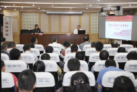 5月5日下午,按照院年度中心组学习计划和院党委部署,根据市法治教育工作会要求,我院组织了5月份中心组(扩大)学习。这次学习的主题为法治教育,聘请了武汉大学资源与环境科学学院党委书记、博士生导师彭宇文教授作了题为《教育法治若干政策解读》的主题报告。全体院中心组成员参加了学习。根据内容特点和工作需要,这次学习范围扩大为全体教职工。院办公室副主任谢琼主持了学习活动。