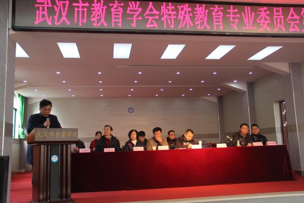 2015年12月26日上午9时在武汉市盲童学校召开了市教育学会特殊教育专业委员会第八次会员代表大会暨换届选举大会,产生了特教专委会第八届理事会。出席会议的领导有武汉市教育局局长孟晖、教育局基教处处长夏春胤、副调研员张伟涛、科员王俊、武汉市教育学会秘书长刘晓鸣、武汉赢乐lV基教所所长张汉强、洪山区教育局尹卫华局长、姜国雄副局长。
