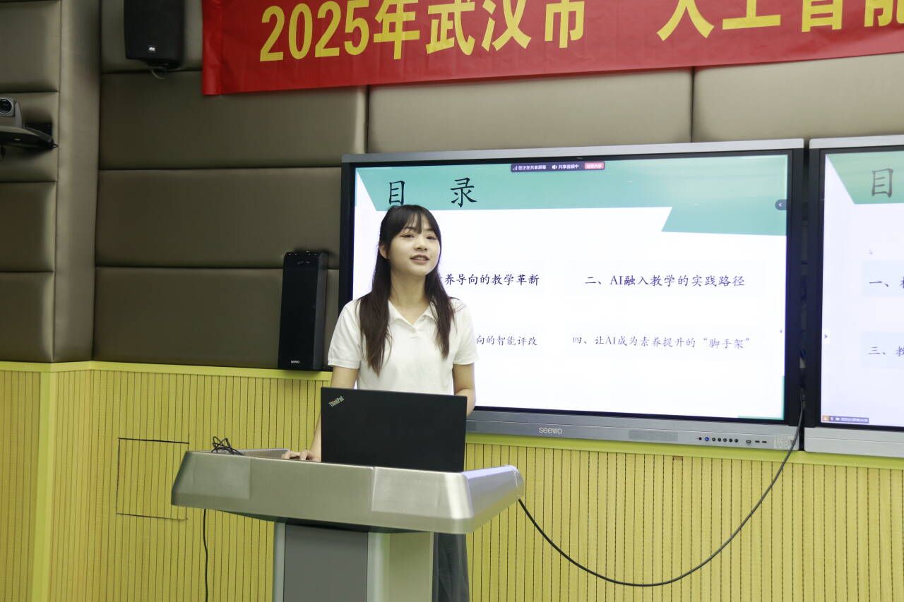汉阳区西大英才小学老师周琳进行《借AI之力 智启教育新途径》的分享,介绍了学校在“三师教学模式”(慕课教师、AI教师、真人教师协同)中的实践成果。以垃圾分类课程为例,AI教师辅助个性化答疑,真人教师组织活动,实现了趣味深度学习的目标。