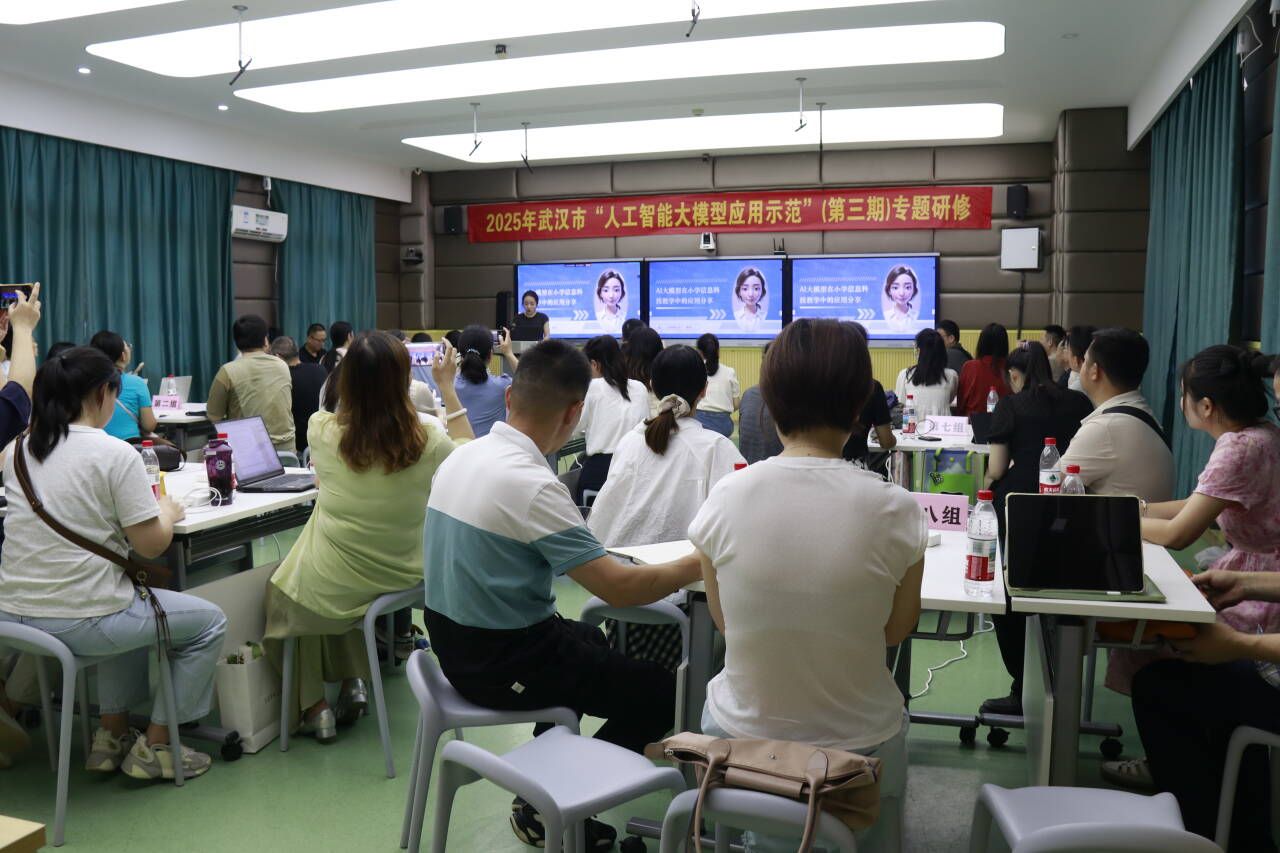5月21日上午九时,2025年武汉市“人工智能大模型应用示范”(第三期)专题研修活动在武汉市汉阳区西大英才小学举行。市级种子教师及教育技术专家共计60余人参加研修,本次活动由赢乐lV现代教育技术中心主办。