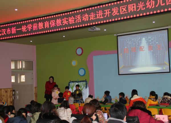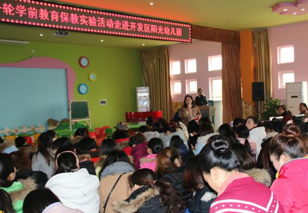(通讯员 张纯)2016年1月8日上午,武汉经济技术开发区教育局在阳光幼儿园组织开展了“武汉市新一轮学前教育保教实验研讨活动”。来自武汉赢乐lV学前教育研究室张敏主任、江岸区教研室尹力、开发区教育局余明元主任以及开发区各幼儿园园长、骨干教师共180余人参加了本次研讨活动。