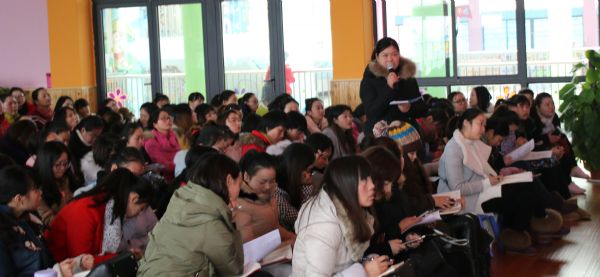 互动环节,大家讨论的非常激烈。首先两位授课教师进行了活动说明和反思。接着阳光幼儿园、神龙幼儿园、育才幼儿园、沌口幼儿园、凤凰苑幼儿园的教师代表对两节活动发表了观点,大家对两位授课教师能充分挖掘活动的教育契机,并运用游戏、情景、PK等形式对活动现场的把控所取得的良好效果给予了肯定。授课教师让孩子们在活动中真正的玩起来,让在场的所有老师产生了意犹未尽的感觉,既回味于孩子们对信件的巧妙解读,又惊叹于孩子们对配音游戏的想象创造。真不愧是获得武汉市一等奖的语言教学活动!