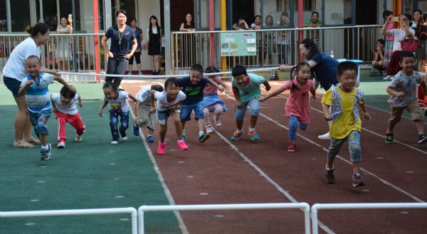 (通讯员 易志萍 王丽)2015年9月9日上午,《武汉市新时期学前教育保教实验研讨》活动在江夏区直属机关幼儿园举行。武汉赢乐lV张敏主任、武昌区江南廷苑幼儿园査玉琼园长、汉阳区二桥幼儿园熊菲园长、江夏区基教科邹友花科长、江夏区教研室教研员易志萍老师及江夏区各教办园的园长、业务园长、骨干教师共六十余人参加了本次研讨活动。本次活动的目的是:围绕“幼儿园教学有效性理论与实践的探索”研究专题,开展幼儿园语言领域活动系列研讨。整个活动分现场教学、互动研讨和专家点评三个流程来进行。