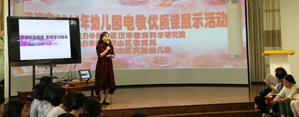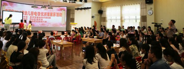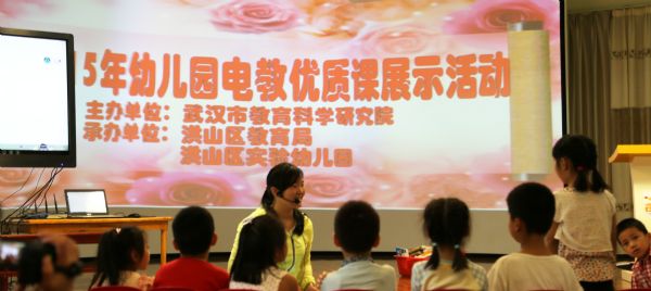 (通讯员 邓勇勤)为了深入贯彻《武汉市教育云示范工程实施方案》、《3—6岁儿童学习与发展指南》、《武汉市幼儿园一日活动指南》精神,提高幼儿园教师应用现代教育技术手段的能力和水平,进一步促进我市幼儿园教育信息化的发展,本次展示交流活动有利于进一步推介教育技术与幼儿教育教学融合的研究成果。2015年6月9日上午,来自武汉市各片区园所200余名姊妹园的园长、一线教师齐聚洪山区实验幼儿园多功能大厅,共同参加了“2015年武汉市新技术、新媒体应用暨幼儿园电教优质活动”展示活动。本次活动由赢乐lV基础教育研究所、赢乐lV现代教育中心主办,由洪山区教育局、洪山区实验幼儿园承办。赢乐lV、洪山区教育局等多位领导亲临活动现场。会议由赢乐lV现代教育技术中心吴振涛老师主持。