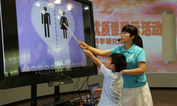 接着,三节现场教学活动展示。三节活动都是2014年武汉市幼儿园电教优质教学活动评比获得一等奖的案例,同时在第八届全国教师教学设计创意大赛中取得佳绩。来自洪山区实验幼儿园的马丽霞老师所执教的科学活动《数豆粒儿》充分运用交互式电子白板、课件展示、智能课堂互动与反馈、幼儿平板操作经验分享等技术、与教师、同伴进行经验分享、互动交流中学习按数群计数的方法,让孩子在玩中学、做中学、生活中学,真正成为学习的主人。华中师范大学幼儿园青年教师黄芳执教的健康活动《我的秘密》以性别话题及隐私部位为主线,对幼儿进行性教育启蒙。活动很好的将信息技术与教学活动相融合,将男女身体的隐私以多种资源如视频、游戏、讨论等多种形式呈现,集合成课件,直观、交互且充满趣味,让孩子们在快乐的游戏中轻松了解身体隐私、科学正确的面对性别话题,尝试分辨友善与分友善的接触,并能采用多种方法拒绝不友善的接触,提高孩子的自我保护能力。武昌区教育局新桥幼儿园陆海红所执教的社会活动《为消防员喝彩》采用远程同步教学的形式,把消防员带到了孩子们的面前,让幼儿通过视频对话与消防员叔叔积极互动,从而了解到消防员工作的性质和特点,整个活动获得的是“难以忘记的学习”而不是“需要记忆的学习”。