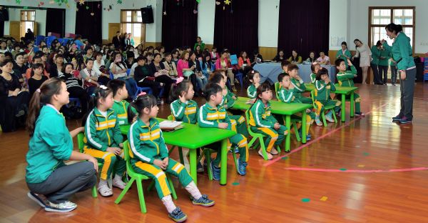 接着,现场教学。第一节是由舒倩老师执教的大班艺术领域活动《小篱笆》。该活动主要以幼儿熟悉乐曲入手,教师引导幼儿借助身体动作、打击乐器、节奏图谱等媒介,激发幼儿大胆尝试用多种形式为乐曲伴奏,让幼儿在愉悦、轻松的氛围中习得知识获得发展。 第二节是由万青老师执教的大班科学领域活动《小小食品安全员》。万老师把把当今社会关注的“食品安全”热点问题搬到幼儿园教学活动中来,从生活实际出发,让幼儿从小珍爱生命,了解食品安全与我们健康息息相关,富于了课程生命力。这两节教学活动中,教师巧妙地把目标转化为幼儿发展的需求,把目标伴随问题导入,再巧妙把评价和引导进行整合,促进幼儿的互动能力。幼儿在活动中自始至终都围绕着活动主题专注地、愉快地学习。