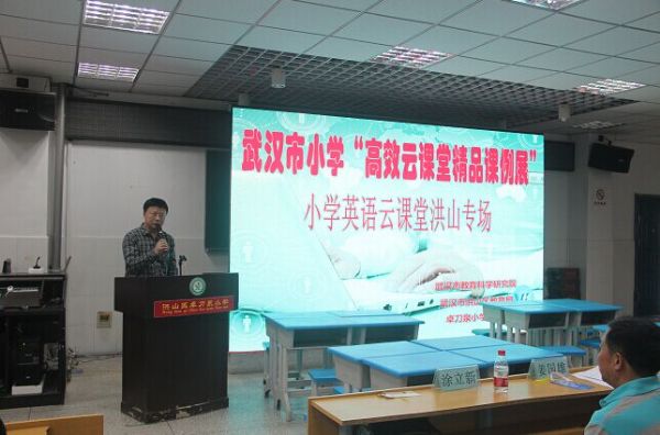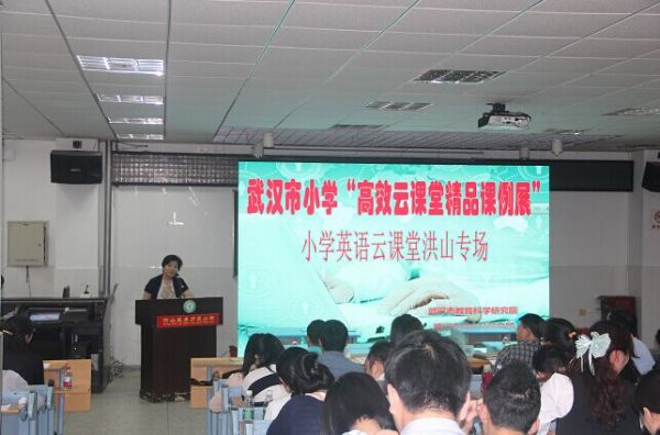 2015年4月28日上午8时,卓刀泉小学报告厅人声鼎沸,全市小学英语教研员、全区小学英语教师齐聚一堂,在这里开展“高效云课堂、精品课例展”洪山区专场展示活动。这次活动是在赢乐lV现代教育技术中心雷刚主任、张岩副主任、吴振涛老师,赢乐lV小学教研室朱腊梅老师的积极推动下,也同时在洪山区教育局尹卫华局长、陈国安副局长、高作旭副局长、姜国雄副局长、张虹主任,基教科涂立新科长、孙璟科长,区电教馆熊志勇馆长、陈杏春书记、张辅纯副馆长、秦雪红老师,区教科中心程凌波主任、熊燕老师、高光椿老师,卓刀泉小学李运河校长和鲁巷实验小学张红娟校长等各级领导的积极配合、组织下开展的,他们曾多次来到卓刀泉小学指导、研讨。参与本次活动的还有洪山区近300多位小学计算机和英语老师。