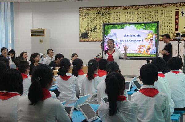 活动中,卓刀泉小学牛少敏老师、鲁巷小学林子老师,向嘉宾们分别展示了《Animals》和《I have a dream》两节英语整合课。两位老师的共同特点是在云课堂中,着力整合精细化的资源,极大的发挥云平台的作用。在此基础上,两位老师又有着各自的特色,例如卓刀泉小学的牛少敏老师,将英语教学中的“习作教学”进行了探索,课堂上精彩地互动,充分体现了卓小师生“表现真我,追求卓越”的精神面貌,通过不同的信息教学手段,很好地实现信息技术教学目标、英语学科教学目标的整合达成,让学生们找到了轻松学英语、快乐学英语的感觉。林子老师进行的是“诗歌教学”,其间将诗歌的韵律利用软件或硬件平台,让学生学会处理海量信息,懂得自我导向学习,将被动学习积极变换为自主学习。两位教师电子白板、平板电脑地熟练应用,赢得了领导专家的一致好评。