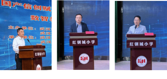 在案例交流环节,三位来自区校的教研员及校长分享了信创落地实践的典型案例。汉阳区楚才小学副校长邓冲介绍了学校依托AI技术构建五大教育场景,以教育信创推动教学优化的具体做法;洪山区教育科学研究院教研员邹其武以英格中学快速部署国产化机房为例,展示了信创环境下信息科技课程的教学探索路径;红钢城小学副校长沈晓娟则围绕“一站式导航+共享资源库+共研线上社区”的资源应用生态,阐述了如何借助信创技术打破校际资源壁垒,助力教联体实现优质数字资源的共建共享与协同发展。