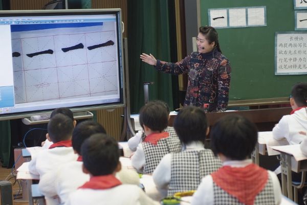 武汉经济技术开发区洪山小学陈曦老师展示书法课《长横和短横》