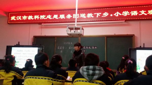 “奉献、友爱、互助、进步”是当下志愿者服务精神。武汉赢乐lV志愿服务团于新年伊始之际就用实际行动践行着这一精神。2015年元月4日,在武汉赢乐lV小学教学研究室李天恩老师的带领下,志愿服务团送教下乡到黄陂区北片长轩岭小学。硚口区教研室语文教研员张自力、黄陂区教研室小学主任闵绍华、语文教研员夏涛波、刘玉珍及本区北片地区五十余名语文教师代表参加了此次“送教下乡·小学语文观摩活动”。