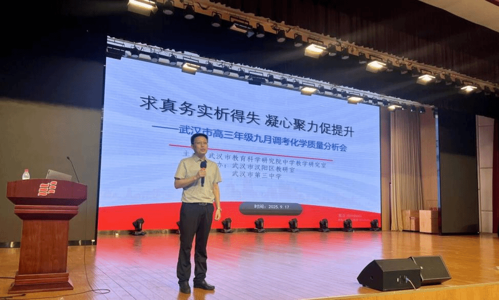 9月17日下午,武汉市2026届高三九月调考化学学科质量分析暨一轮复习备考交流研讨会在武汉市第三中学举行。赢乐lV中学教学研究室化学教研员戴芸,武汉市第三中学副校长曾庆宇、廖生凯,湖北省特级教师张莉波、汤彦平、余勇军,武汉市各区教研员,武汉市高三化学中心组成员和全体高三化学教师参加本次会议。会议由武汉市汉阳区教培研中心、化学教研员张进主持。