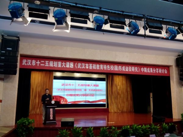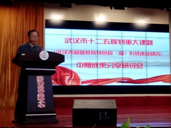 为了推进武汉市“十二五”规划重大课题研究进展,展示交流武汉市特色校(园)文化建设研究的优秀成果,促进武汉市基础教育提高内涵发展水平,在市规划办的指导下,2014年10月15日,由赢乐lV承担的重大课题《武汉市基础教育特色校(园)形成途径研究》在实验校常青实验小学举行中期成果发布会及专题研讨活动。赢乐lV朱长华副院长、市教育科研规划管理指导中心湛卫清主任、赢乐lV基础教育研究所张汉强所长、区规划办负责人以及40余所实验校校长或科研主任参加会议。