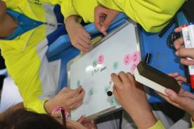 本次评比活动还有一个特别值得一提的亮点,武汉市南湖中学李婉老师团队敢于尝试“云教室”新技术,自带服务器在赛场临时搭建了一个小型局域网,学生人手一台PAD,教室可以利用局域网了解每位学生的学习情况,可以提取任意一台PAD上的学习内容共享给全班,让每位听课教师都感觉耳目一新,感受到“无纸化课堂”正在向我们走来。