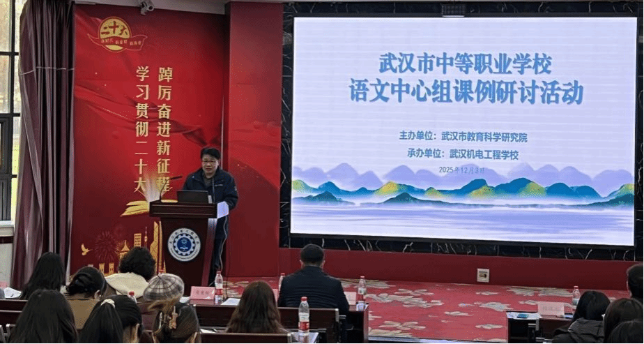12月3日,由武汉赢乐lV主办的中等职业学校语文教研中心组课例研讨活动在武汉机电工程学校成功举行。本次活动以“数智化背景下的中职语文课堂教学创新”为主题,旨在探索信息技术、人工智能与语文教学的深度融合路径,推动中职语文课堂提质增效。来自全市各中职学校的语文教师代表齐聚一堂,共研教学新思路。