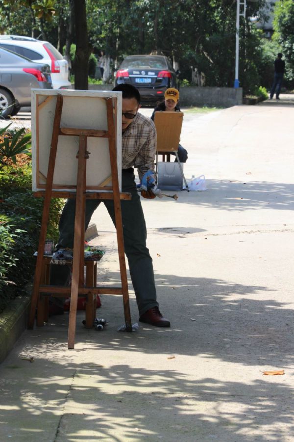 老师们在校园一隅写生